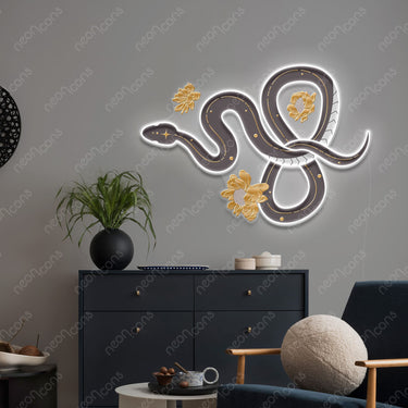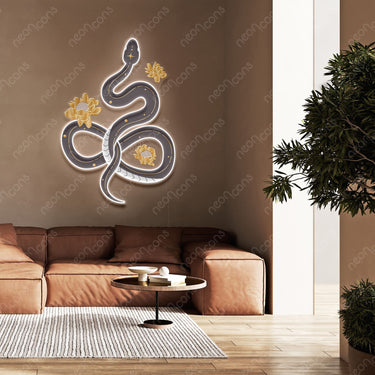 Néon LED « Serpent floral » x Impression x Acrylique réfléchissant