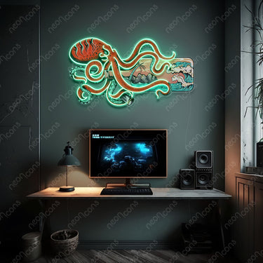 Illuminez votre espace avec « Paradise In A Bottle » ! Cette enseigne LED Neon x Print représente une pieuvre originale sur une bouteille contenant un décor d'île tropicale. Un mélange parfait de fantaisie et d'évasion, transformant n'importe quelle pièce en un havre de paix exotique. Apportez une ambiance de plage chez vous et laissez libre cours à votre imagination ! Couleur néon : bleu sarcelle Taille : Pour les mesures exactes, se référer aux cm. La première taille dans la description correspond toujours au côté le plus long du panneau. 75 cm x 44 cm (2,5 pi x 1,5 pi) 90 cm x 52 cm (3 pi x 1,8 pi) 105 cm x 60 cm (3,5 pi x 2 pi) 120 cm x 68 cm (4 pi x 2,3 pi) #tropical #poulpe #océan