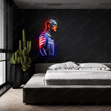 Adoptez l'esprit héroïque avec « Merica », une enseigne LED Neon x Print représentant l'emblématique Captain America le regard fixé vers l'horizon. Accrochez ce chef-d'œuvre patriotique et laissez la détermination inébranlable de Captain America illuminer votre espace d'une inspiration super-héroïque. Des pages de bandes dessinées à vos murs, célébrez l'héritage intemporel de Captain America et honorez ce symbole éternel de liberté et de justice ! ⭐️ Couleur néon : rouge, bleu et blanc Taille : Pour les mesures exactes, se référer aux cm. La première mesure dans la description correspond toujours au côté le plus long du panneau. 45 cm x 26 cm (1,5 pi x 0,9 pi) 60 cm x 33 cm (2 pi x 1,1 pi) 75 cm x 41 cm (2,5 pi x 1,4 pi) 90 cm x 48 cm (3 pi x 1,6 pi) 105 cm x 56 cm (3,5 pi x 1,9 pi) 120 cm x 63 cm (4 pi x 2,1 pi) #marvel #avengers #bande dessinée
